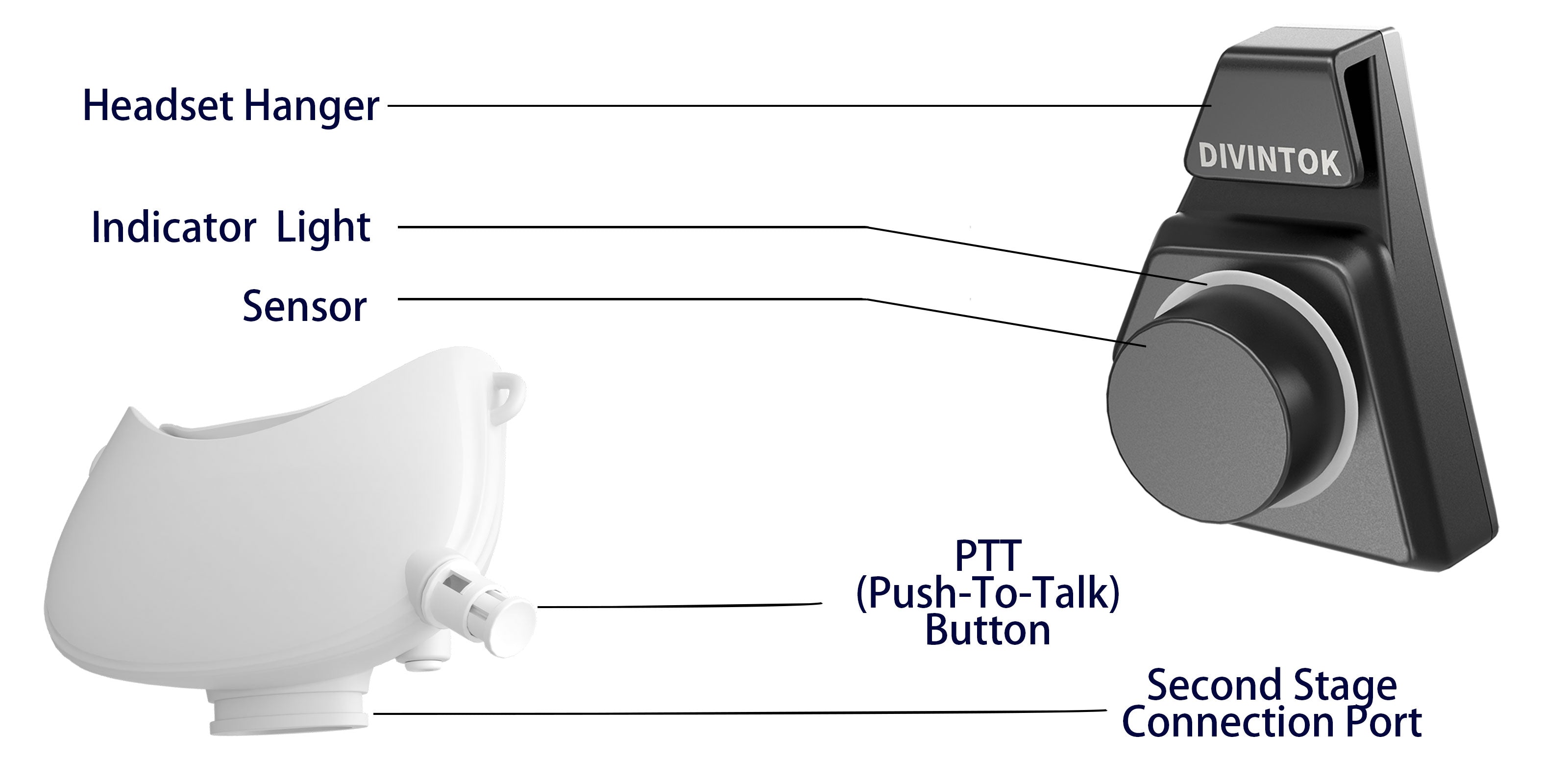 DIVINTOK Scuba Diving Voice Communication System includes both underwater and surface transceivers, fully compatible with standard scuba gear. It is widely used in scuba instruction, underwater filming, performances, and guided dives, supporting wireless voice communication between multiple divers and with the surface.