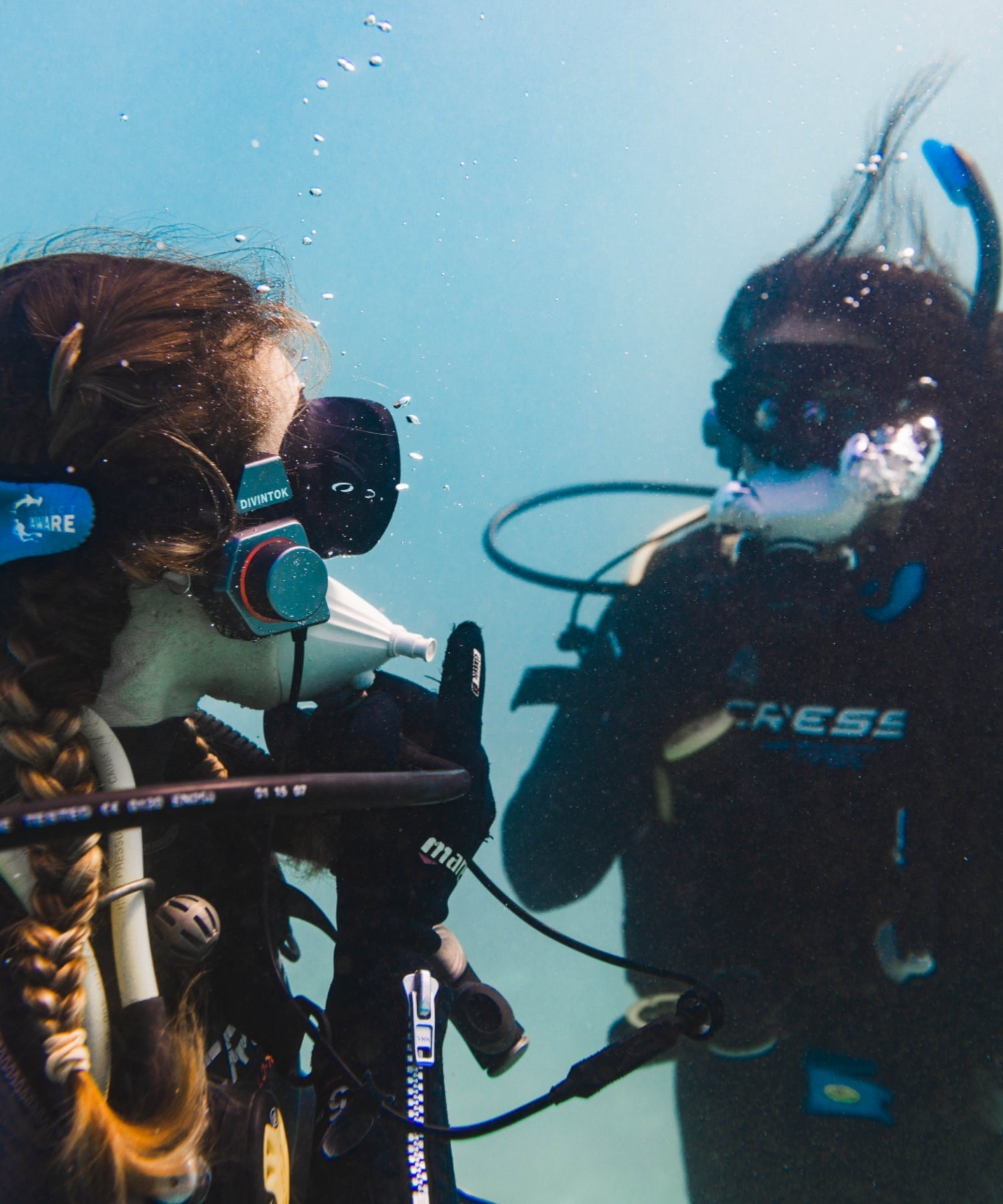 In my scuba diving classes, especially when we're doing commercial shoots, I use this product to chat with my students or models underwater, right in the moment.
